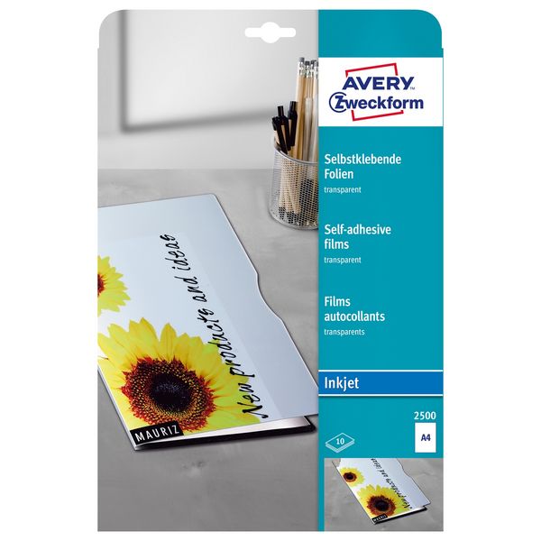 Avery Zweckform 2500 Transparente, selbstklebende Folien, DIN A4, spezialbeschichtet, stapelverarbeitbar, selbstklebend, Stärke: 0,17 mm, 10 Blatt