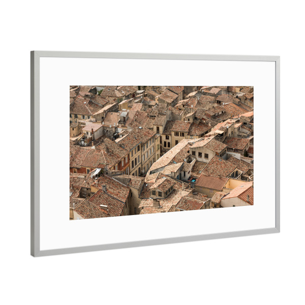 Poster mit Rahmen Silber "Roofs of Sommieres" artboxONE - Architektur