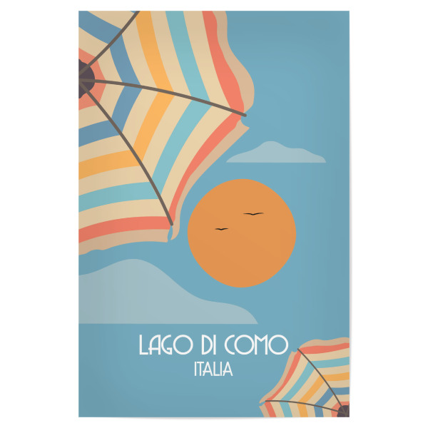Poster "Como - Parasol" artboxONE - Reise / Strand und Meer - Como,See,Sonne,Sonnenschirm,Möwe,Vögel,Bunt,Urlaub,Reise,Entspannung,Minimalistisch