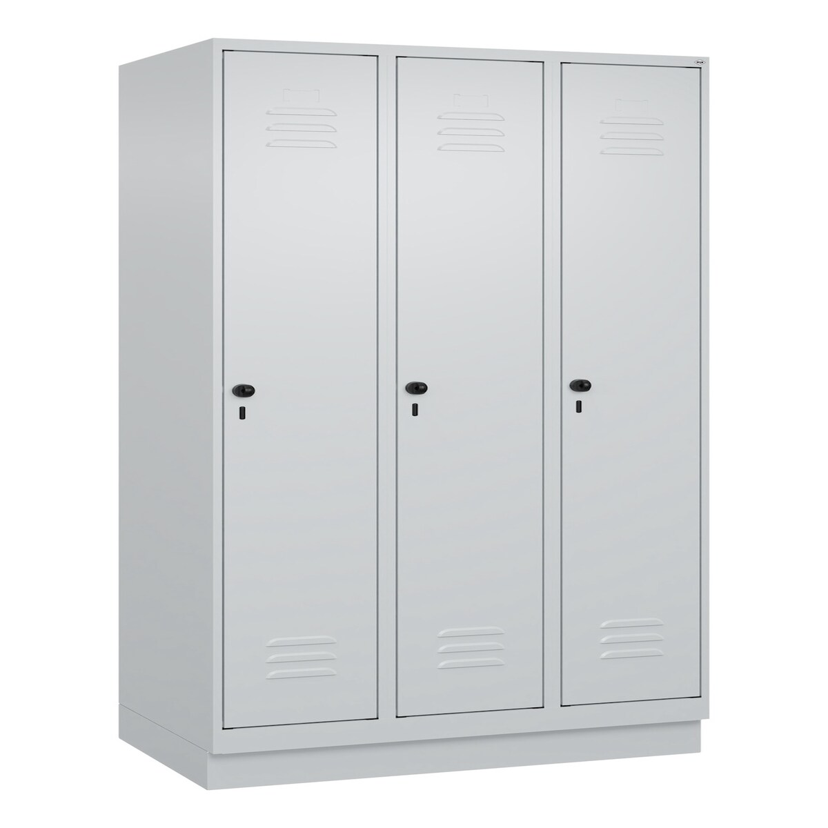 C+P Spind Classic PLUS, Sockel, 3 Abteile, HxBxT 195x90x50cm, Sicherheitsdrehriegel, Hellgrau/Hellgrau von PROREGAL