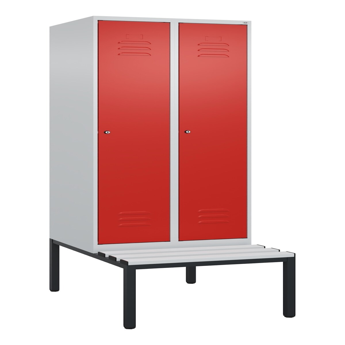C+P Spind Classic PLUS, Kunststoff untergebaute Sitzbank, 2 Abteile, HxBxT 212x60x82cm, Zylinderschloss, Hellgrau/Rot von PROREGAL