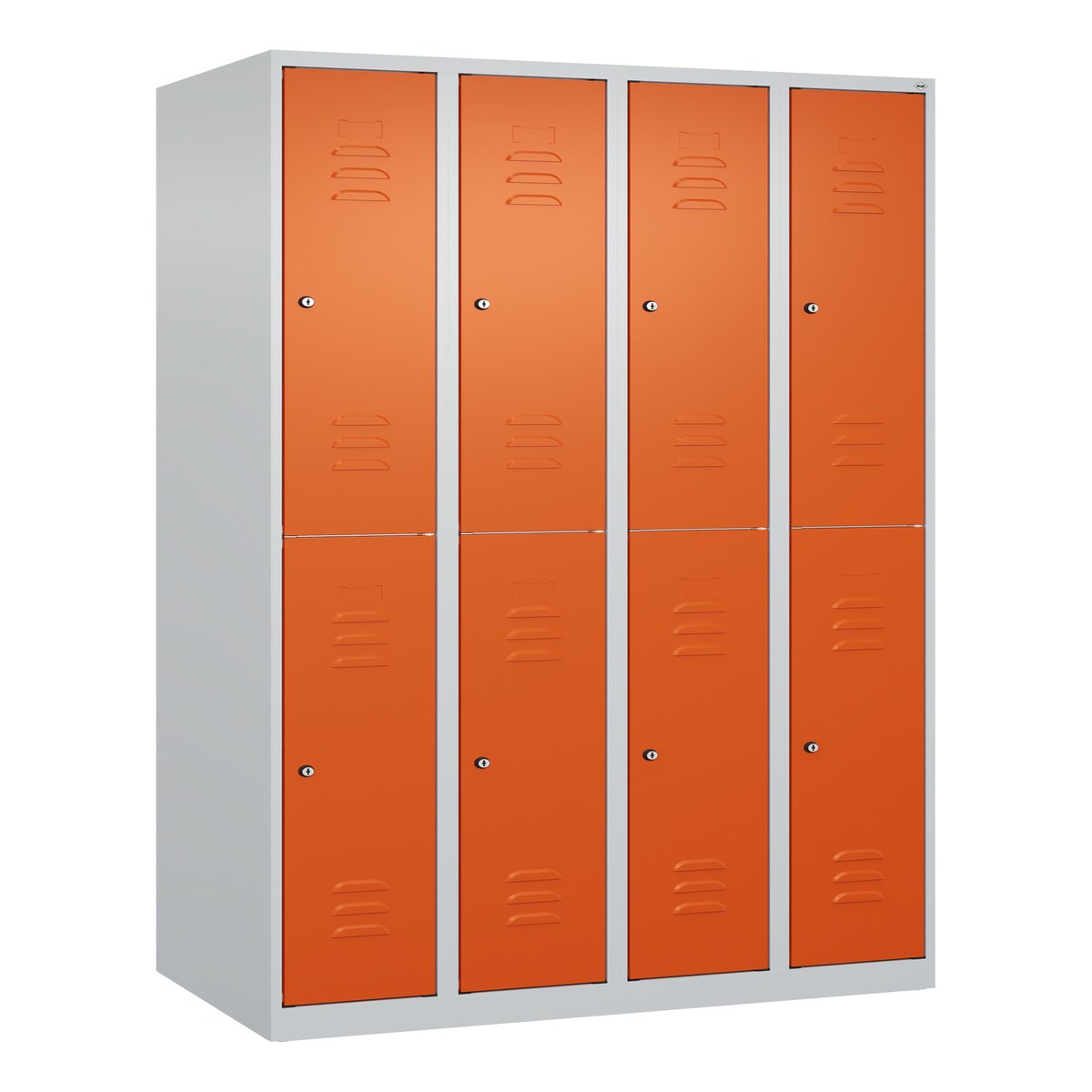 C+P Spind Classic PLUS, 8 Abteile, HxBxT 185x100x50cm, Zylinderschloss, Hellgrau/Reinorange von PROREGAL