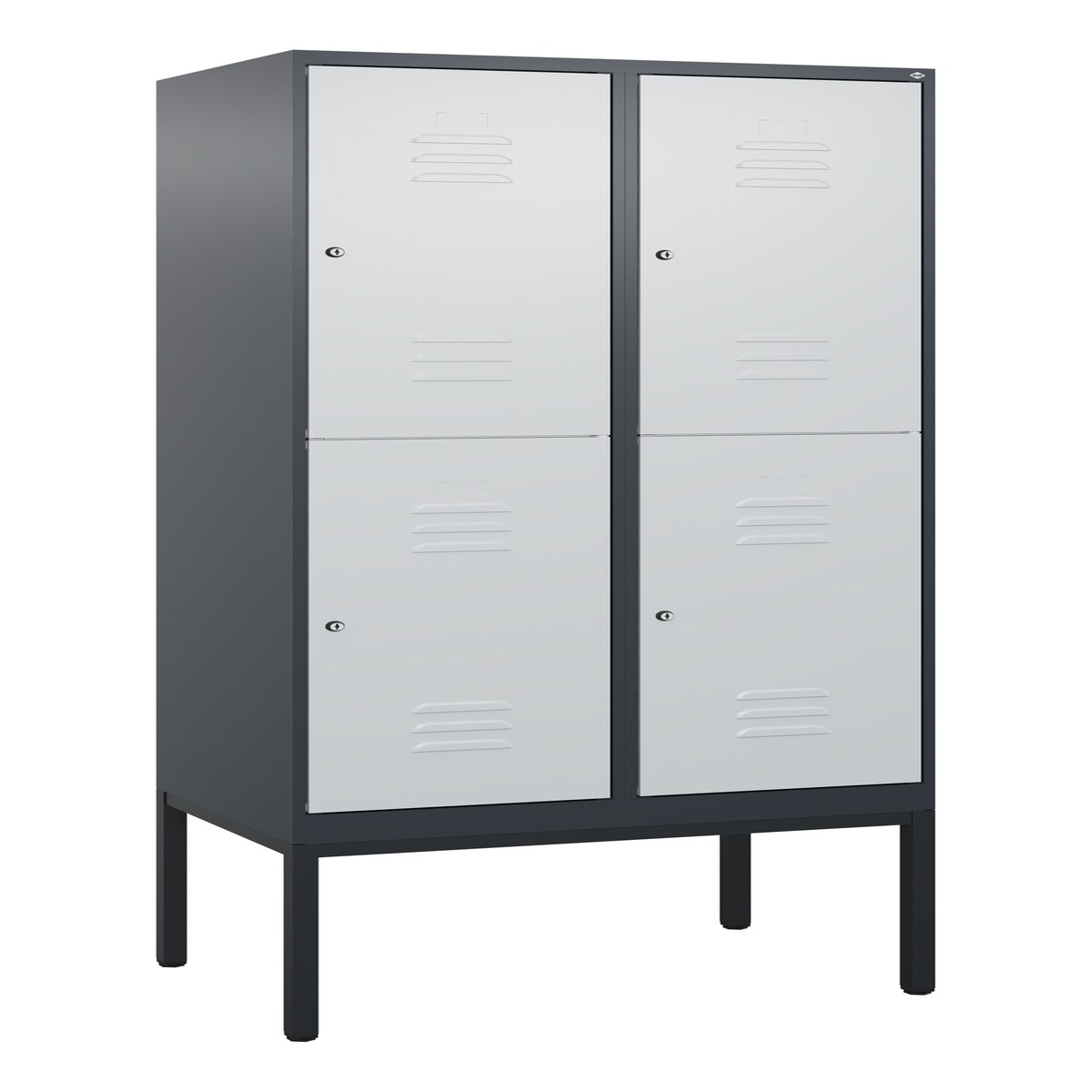 C+P Doppelstock-Spind Classic PLUS, Gestell, 4 Abteile, 2120x1200x500mm, 7016/70 Verschluss Zylinderschloss Front RAL 7035 Lichtgrau ; C + P Möbelsyst