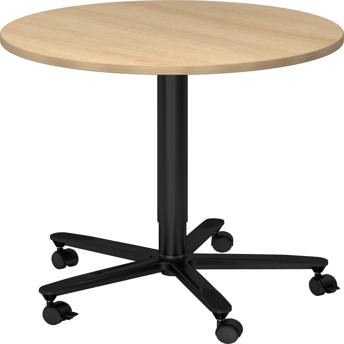 bümö Säulenhubtisch höhenverstellbar, Stehtisch Büro, Bistrotisch rund 80 x 80 cm - Besprechungstisch Eiche, Stehtisch Holz-Platte, Säule aus Metall