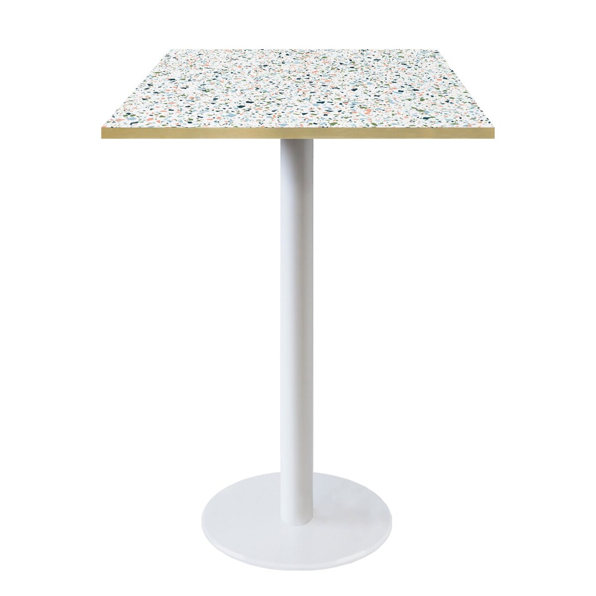 RestooTab - Stehtisch Rome weiß 60x60 Dekor Terrazzo spectra chip Kanten messingfarben