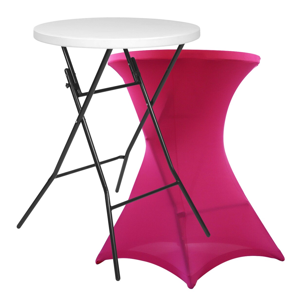 Mendler Set Stehtisch + Stehtischhusse HWC-J30, Bistrotisch Tischhusse, klappbar höhenverstellbar Ø 60cm ~ Husse weiss