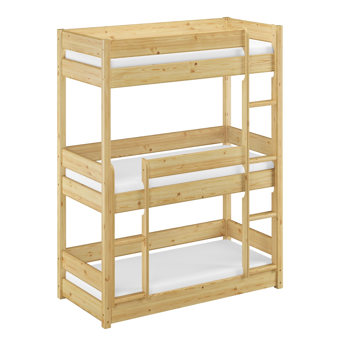Erst-Holz Dreier-Stockbett für drei erwachsene Personen 80x200 Kiefer massiv natur Zubehör wählbar V-60.03-08 Rollrost und Matratze inkl.