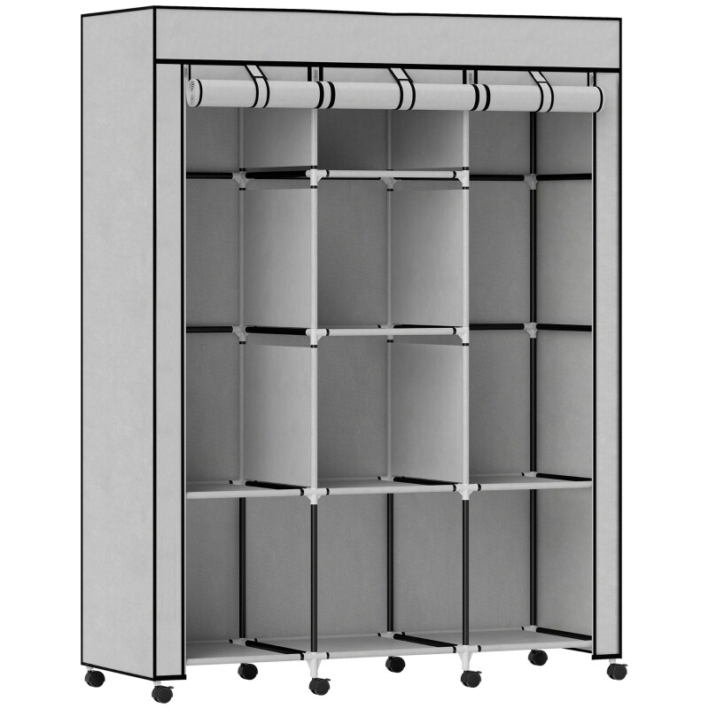 Cloris DesignMöbel Kleiderschränke - Grau Kleiderschrank mit Fächern und Stangen Grau 150x45x175cm Stoff Schlichtes5306506