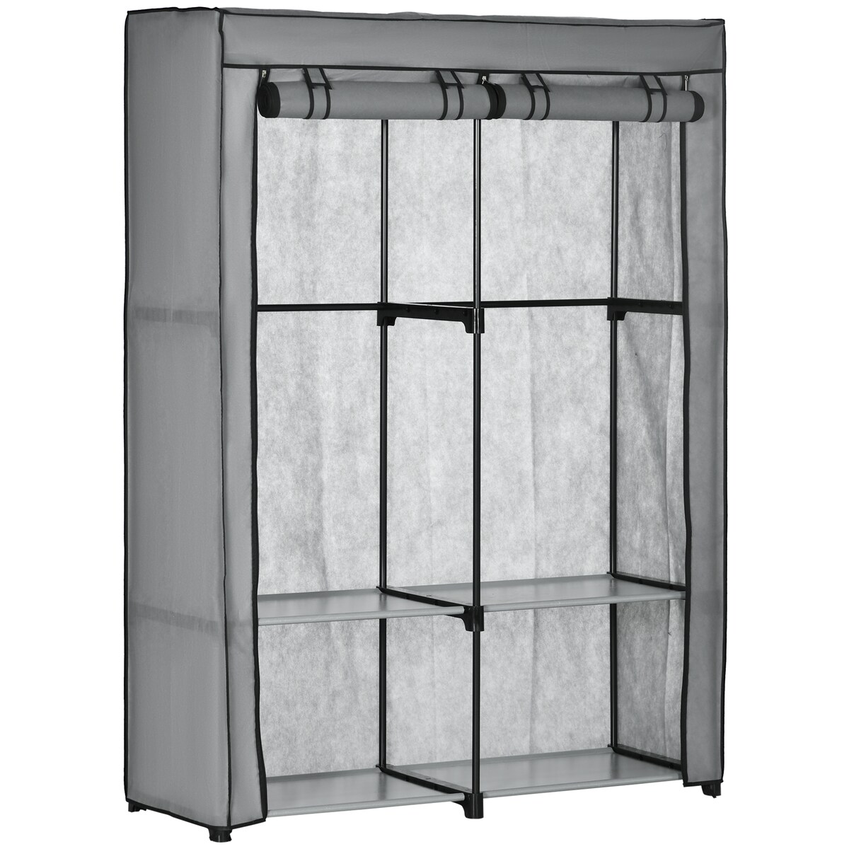 Kleiderschrank mit Fächern und Stangen Grau 150x45x175cm Stoff
