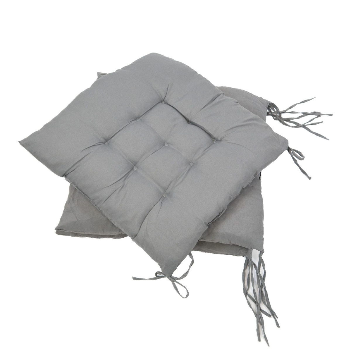 Intirilife 4x Stuhlkissen zum Binden in Grau - 40 x 40 x 3 cm - Sitzkissen für Zuhause, im Büro, Auto, Sofa, Sitzbank, drinnen und draußen