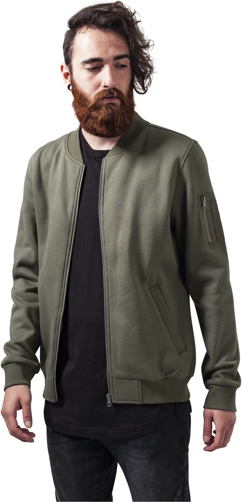Urban Classics - SWEAT BOMBER Hoody olive - M
