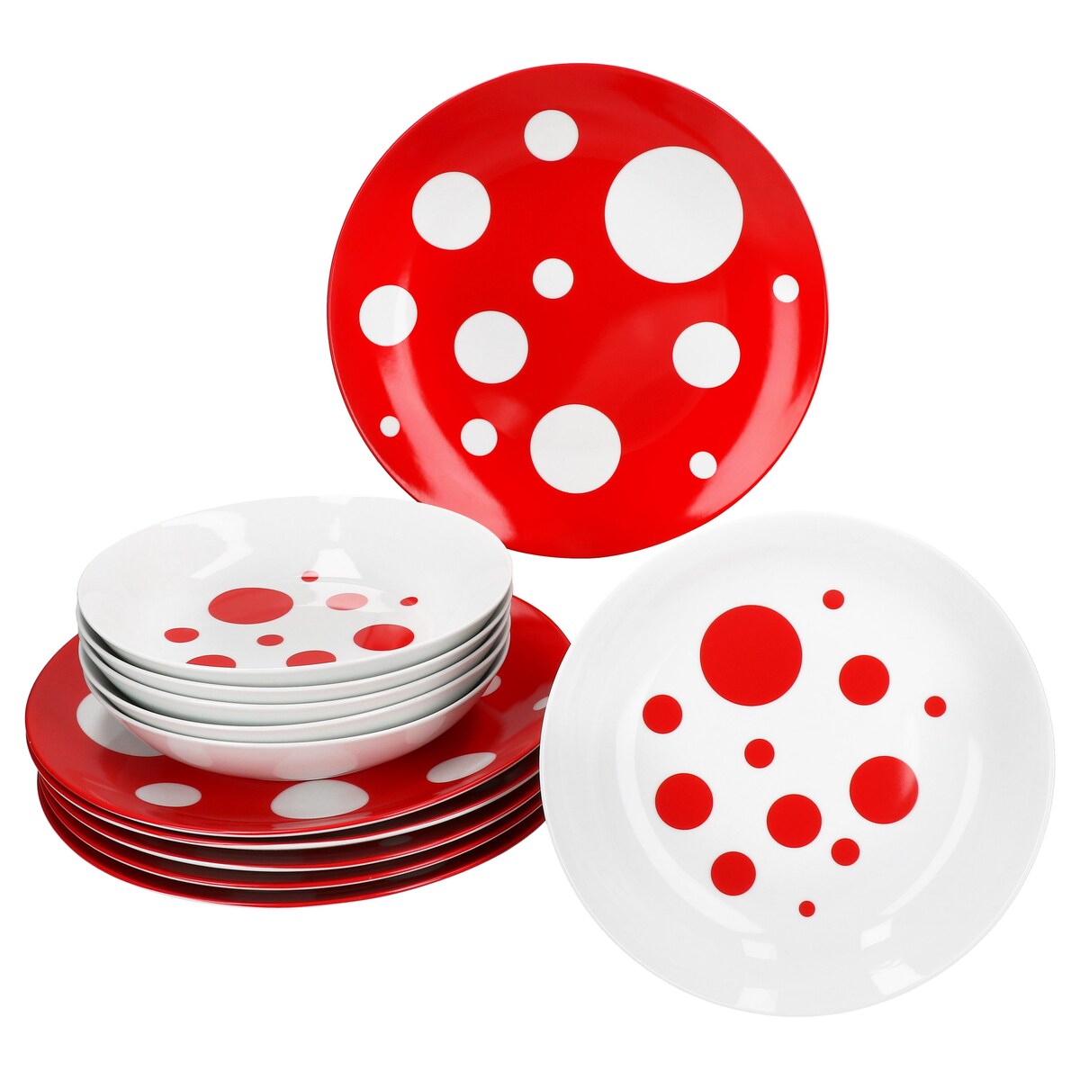 12tlg Tafelservice Pula rot Porzellan 6 Pers Speiseteller Suppenteller Punkte