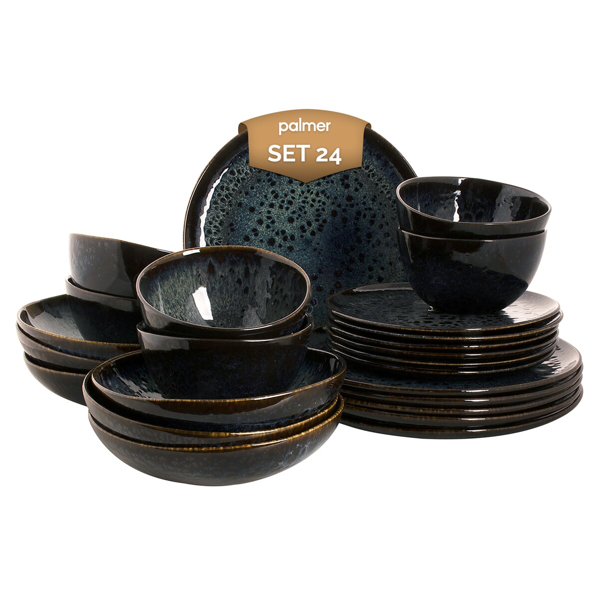 Palmer ECCENTRIC Geschirrset 6 Personen, modernes Tafelservice 24-teilig, Kombiservice Steingut, Geschirrset Blau, Spülmaschinen -& Mikrowellenfest