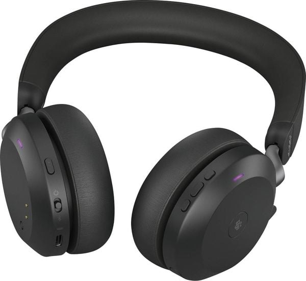 Jabra Evolve2 75 On Ear Headset Bluetooth , kabelgebunden Schwarz Batterieladeanzeige, Mikrofon-Stummschaltung Telefon -