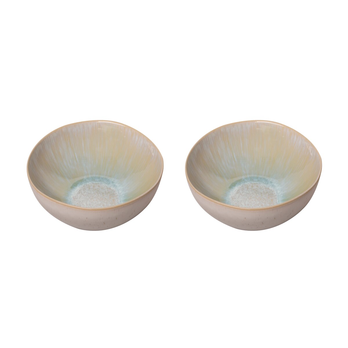 palmer Light Blue Sea große tiefe Teller - 2er-Set, Steinzeug, Ø 22 cm, hellblau Pastell beige, für Pasta, Suppe oder als Servierteller