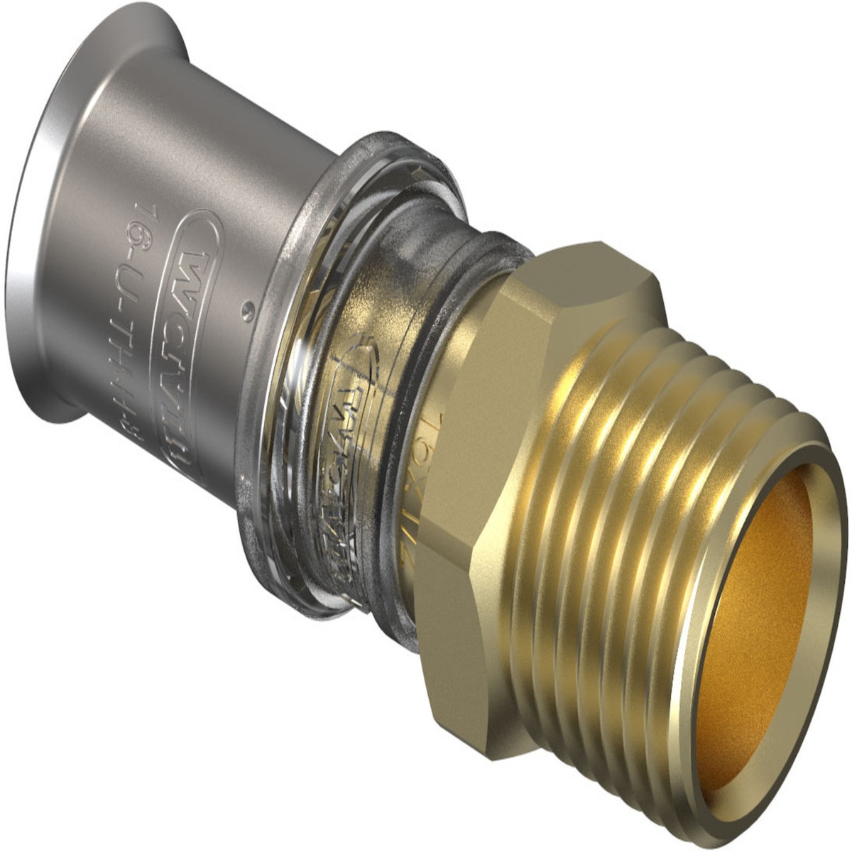 Wavin Tigris M5 Metall Pressfitting Übergangswinkel Außengewinde | Radial Press 16-40mm | Leckage-Signal 80dB verschiedene Größen