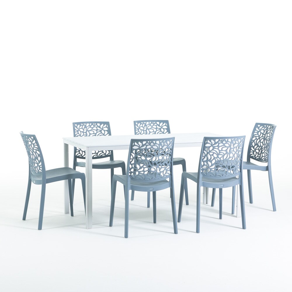 Weiß Rechteckig Tisch und 6 Stühle Farbiges Polypropylen-Außenmastenset Grand Soleil Rome Summerlife - Weiß