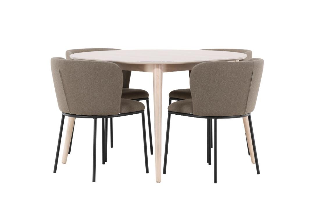 Ebuy24 Flora Essgruppe Tisch Ø120cm und 4 Stühle whitewash, braun.