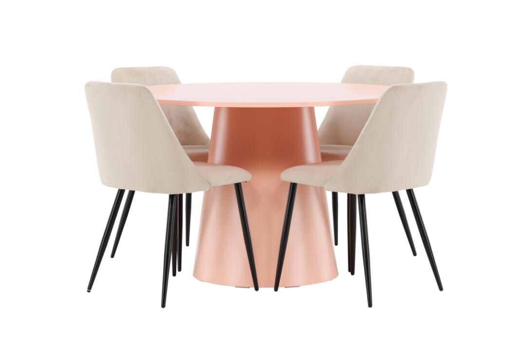 Lanzo Essgruppe Tisch Ø120cm und 4 Stühle peach, beige.