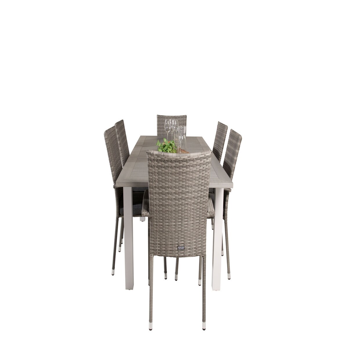 Albany Gartenset Tisch 90x152/210cm und 6 Stühle Anna grau, cremefarben.