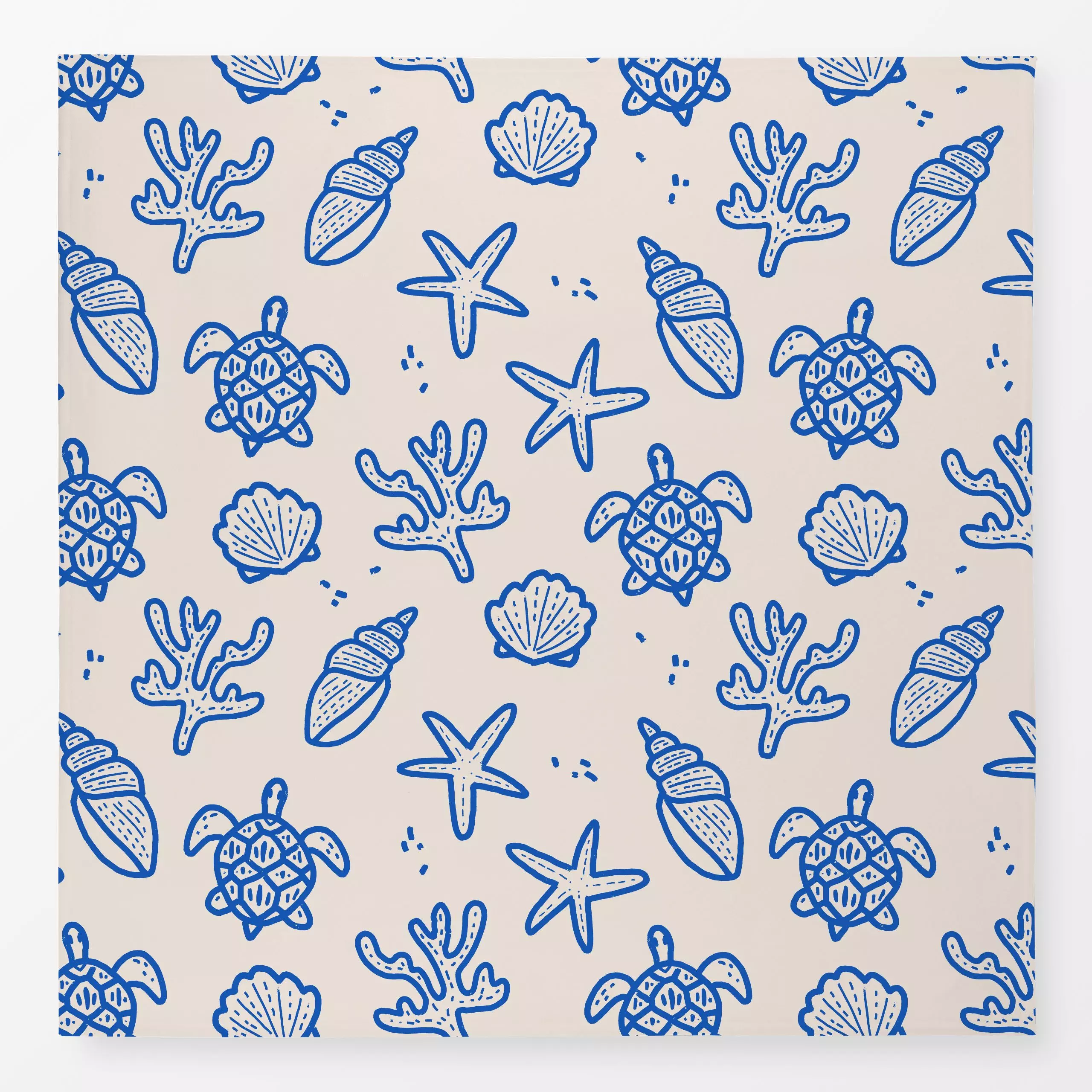 Tischdecke Allover Shell blue - Natur & Landschaft, Sommer - von „Kruth Design"; Kissen, Garten, Meer, Strand, beige, Sommer...