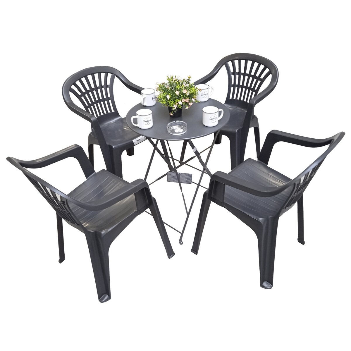 Gartenset Sitzgruppe Tisch Stuhl 5-tlg Anthrazit Kunststoff Metall Bistro Garten