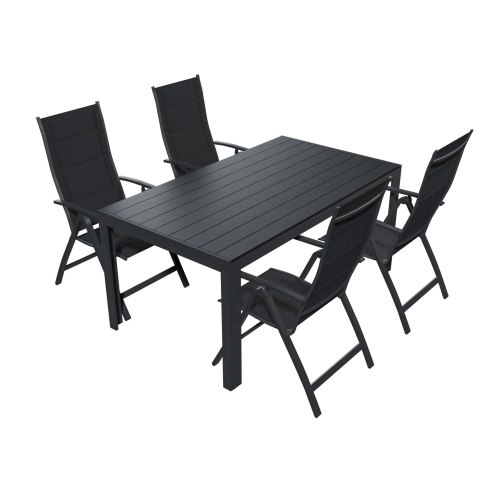 Metall-Gartenesszimmer – Tisch 110 cm lang und 4 stapelbare Stühle – Dunkelgrau – MIRMAND