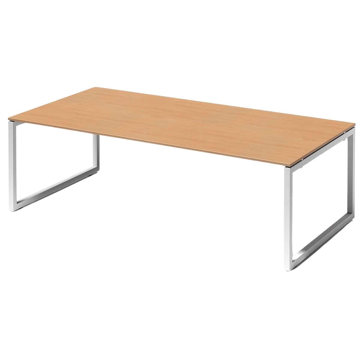 Bisley Cito Konferenztisch 240x120 cm, Tischplatte in Buche, O-Gestell in Weiß - Besprechungstisch & Meetingtisch, großer Chef Schreibtisch XXL-Tisch
