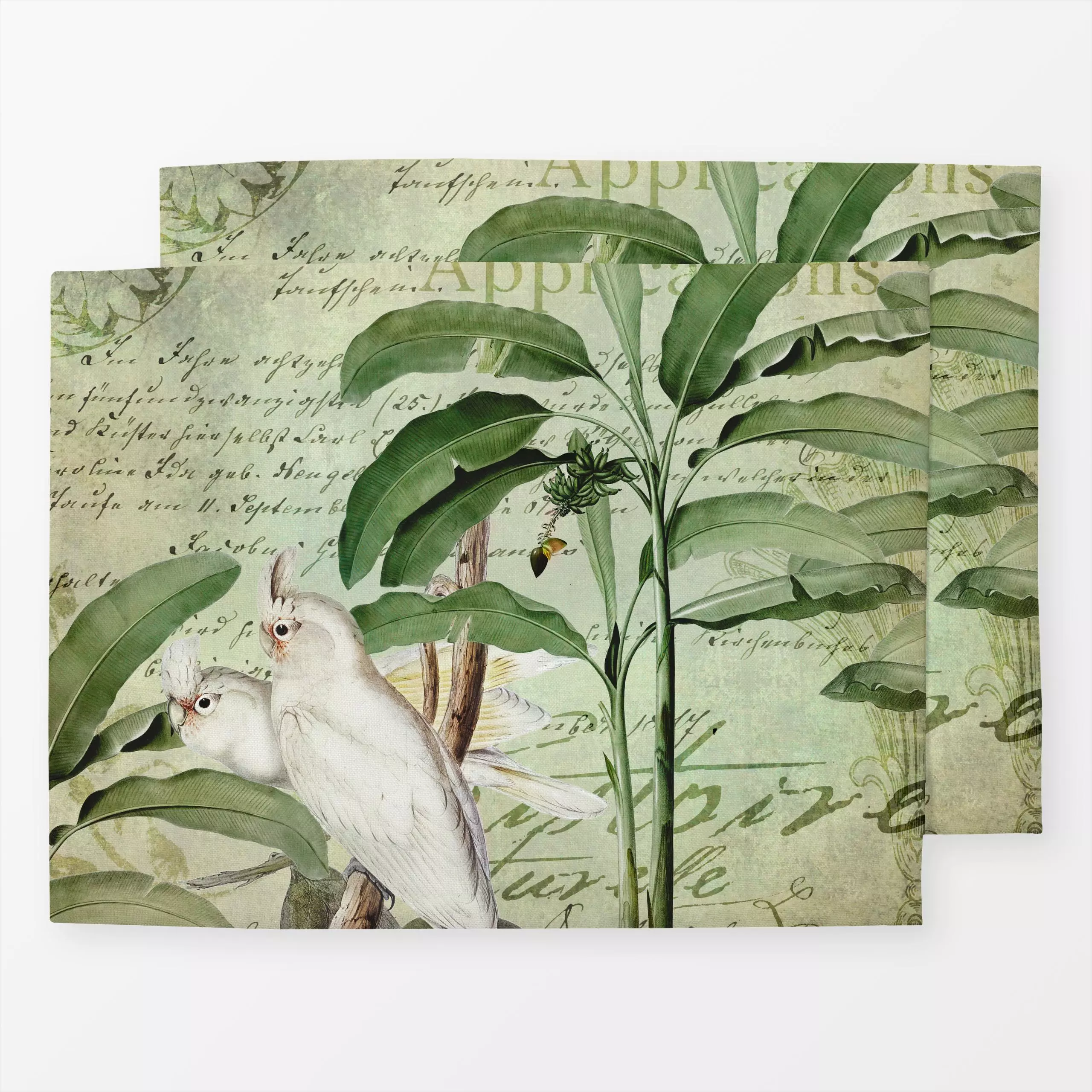 Tischset Kakadus im Tropenparadies 3 - Tiere, Pflanzen & Botanik, Retro & Vintage - von „Andrea Haase"; Palmen, Vogel, Kakad...