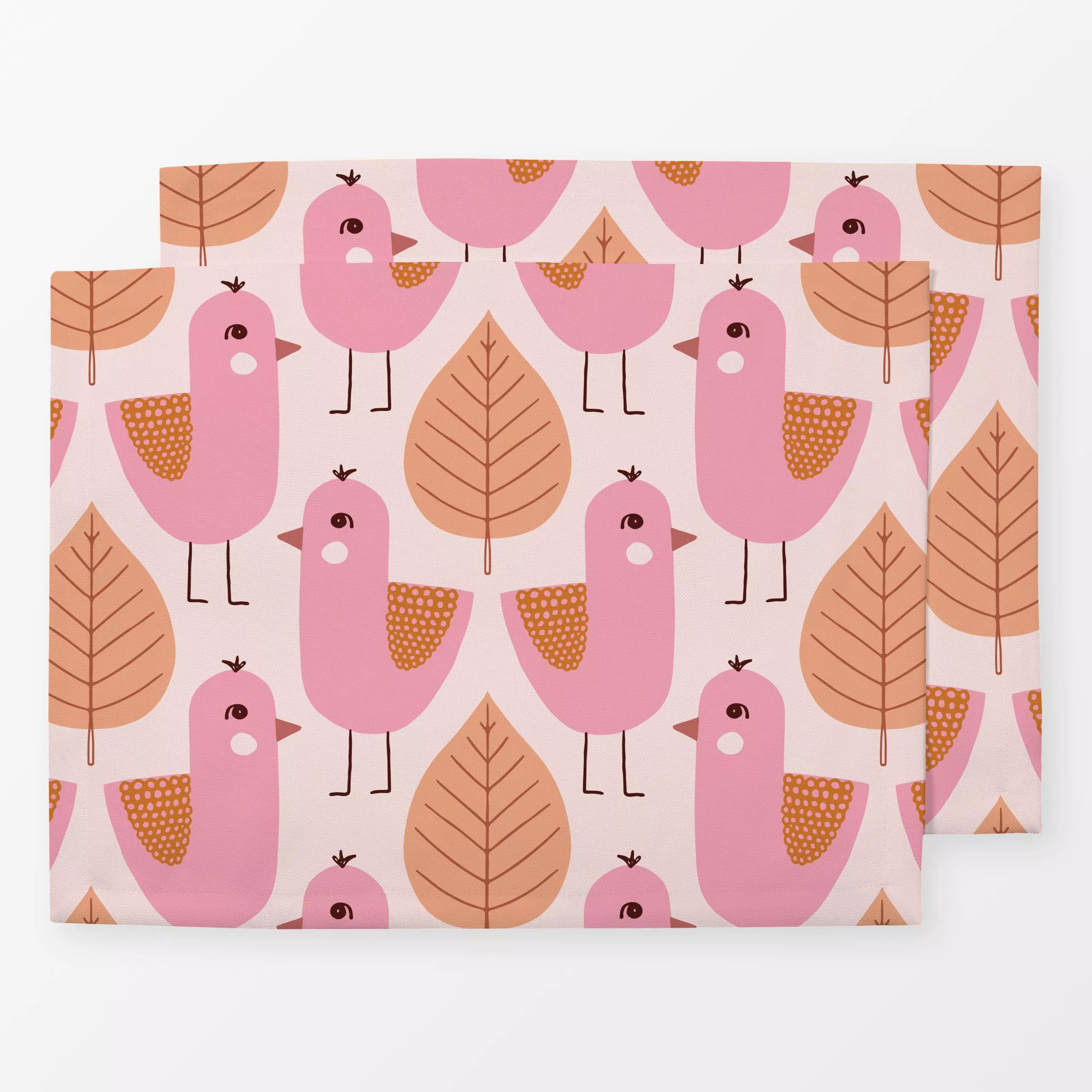 Tischset Vogel Blatt pink pfirsich - Kinderzimmer & Motive für Kinder, Tiere, Symbole & Muster - von „Kathrin Woo"; Muster, ...