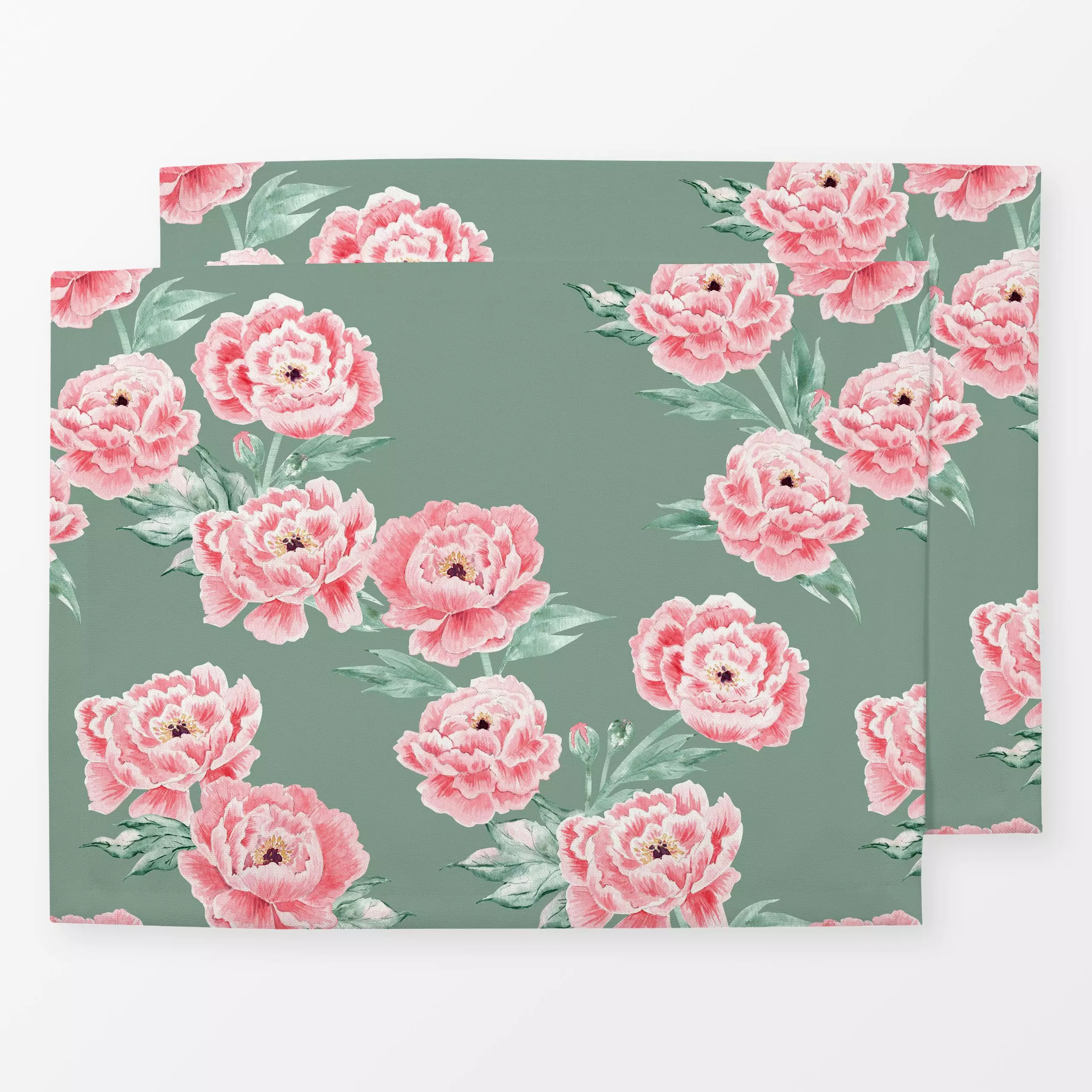 Tischset Pfingsrosen grün - Blumen & Florales, Frühling - von „Katrin Graff"; rosa, Garten, landhaus, Pfingstrose, outdoor, ...