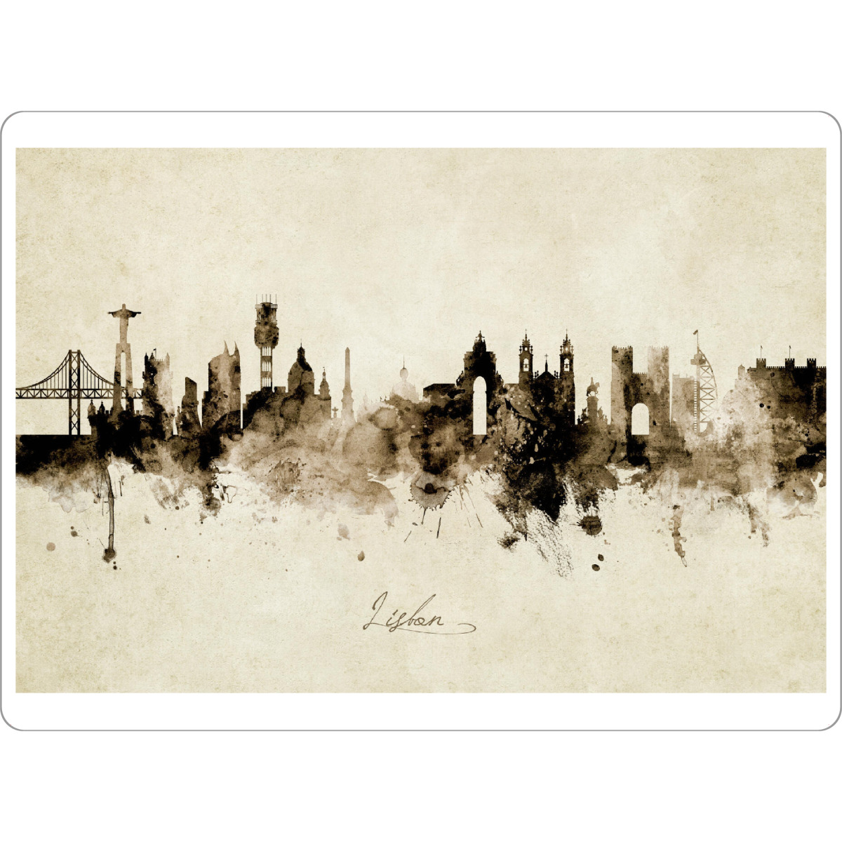 Tischset "Lisbon Portugal Skyline Sepia" artboxONE - Städte - Lisbon,Portugal,Skyline,Cityscape,Stadtbild,Watercolor,Painting - Bild lisbon