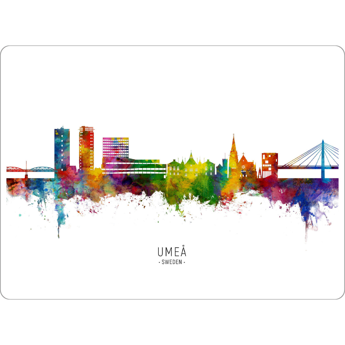 Tischset "Umeå Sweden Skyline txt" artboxONE - Städte - Umeå,Sweden,Skyline,Cityscape,Stadtbild,Watercolor,Painting,City,Stadt,Colorful,Bunt,Schweden