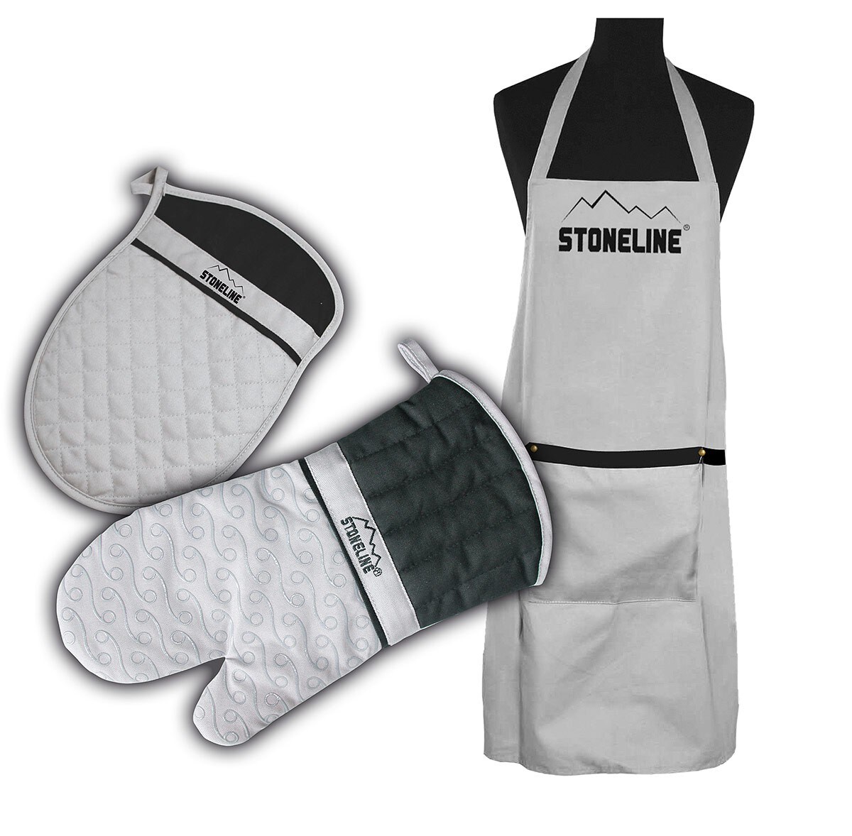 STONELINE Back- und Küchenset, 3-tlg. Backschürze, Topfhandschuh und Topflappen
