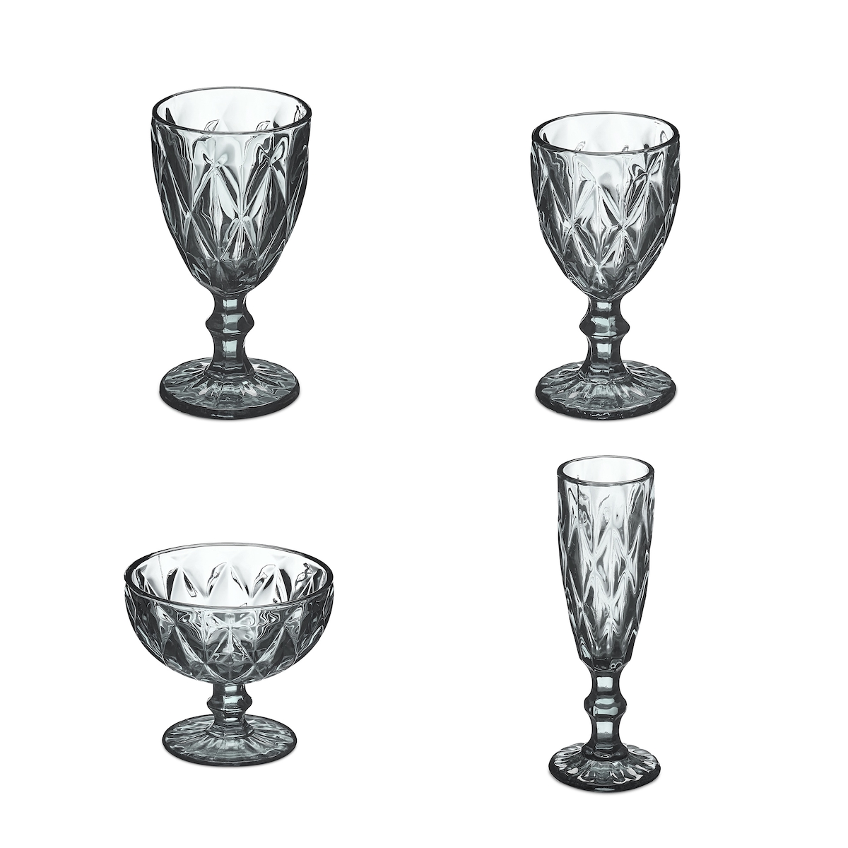 Relaxdays Gläser Set, 7-teilig, Krug, Eisbecher, Sektglas, je 2 Trinkgläser & Weingläser, Gläser spülmaschinenfest, grau