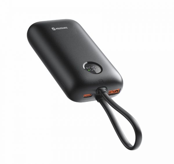 Swissten Powerbank Voltbox 35W 10000 mAh mit Built-in Kabel USB-C und Lightning Schwarz - Swissten