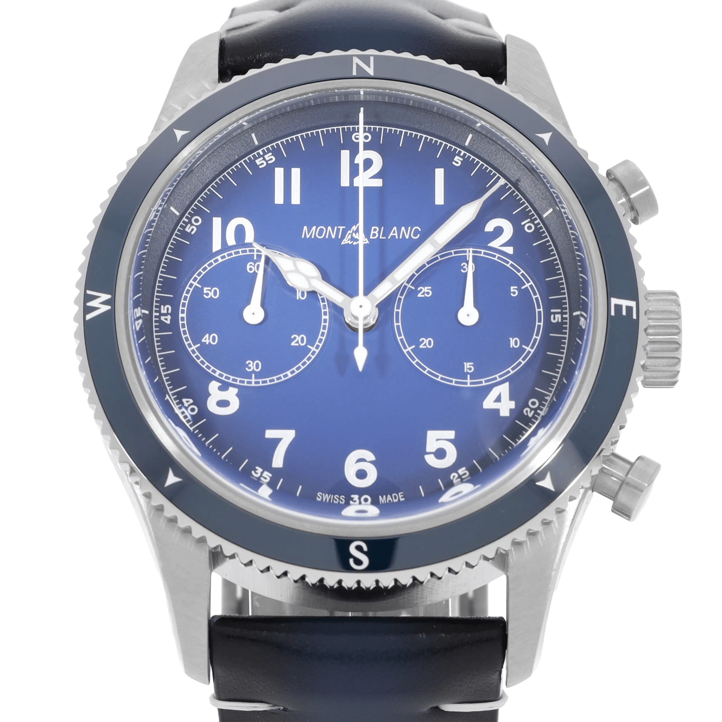 Montblanc Uhren - 1858 - Gr. unisize - in Blau - für Herren - aus Kalbsleder & Edelstahl & Saphirglas