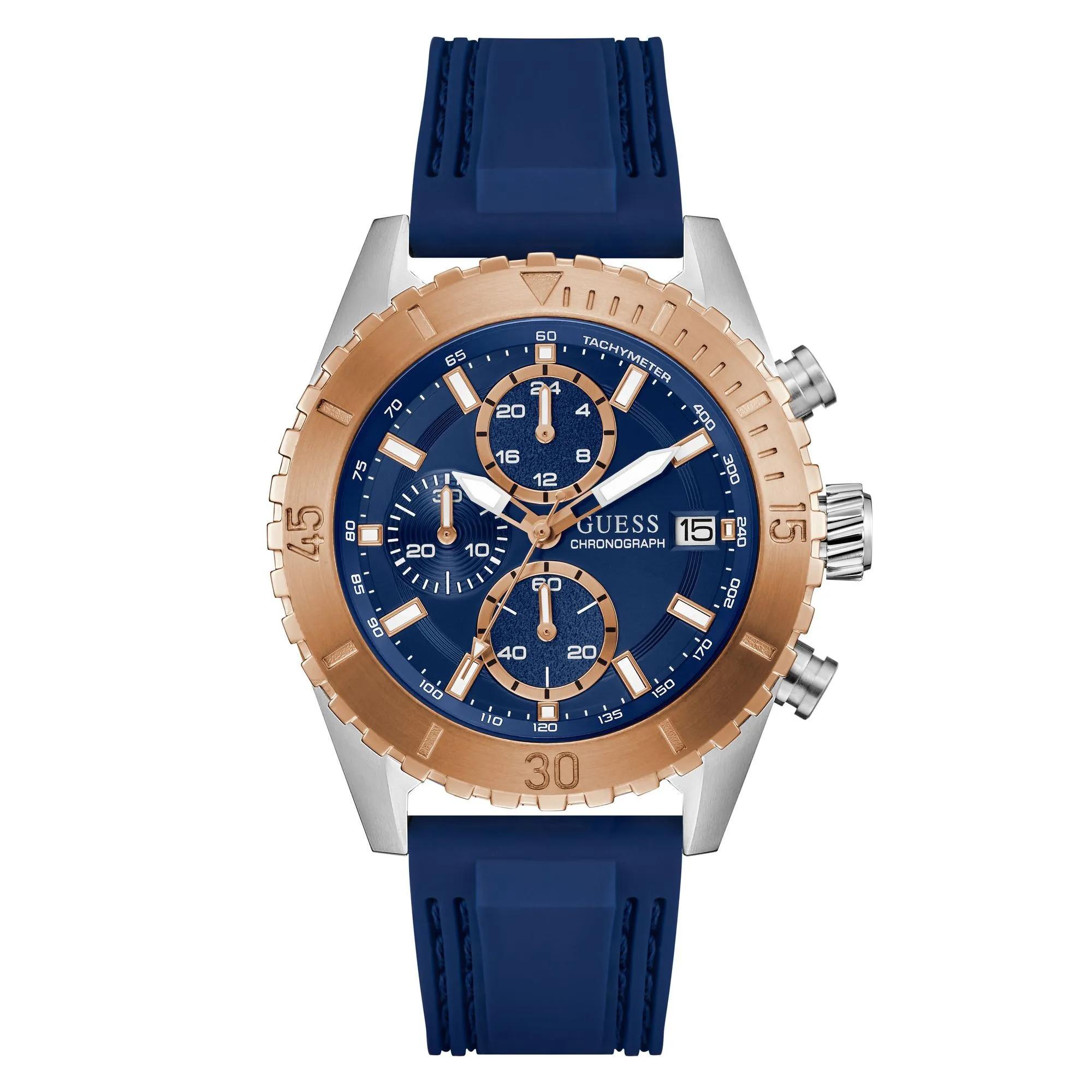 Guess Uhren - Quarz-Analoguhr Chandler - Gr. unisize - in Blau - für Herren - aus Silikon & Edelstahl