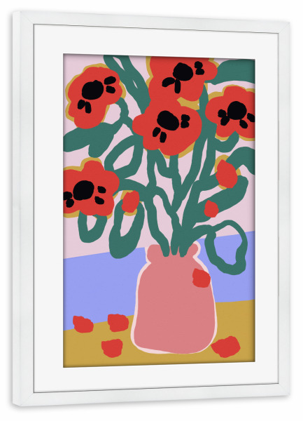Poster mit Rahmen weiß "Mohn In Pinker Vase" artboxONE - Floral,Abstrakt,Für Mama