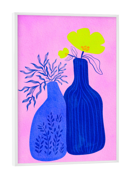 Poster mit weißem Rahmen "Two blue floral vase" artboxONE - Floral