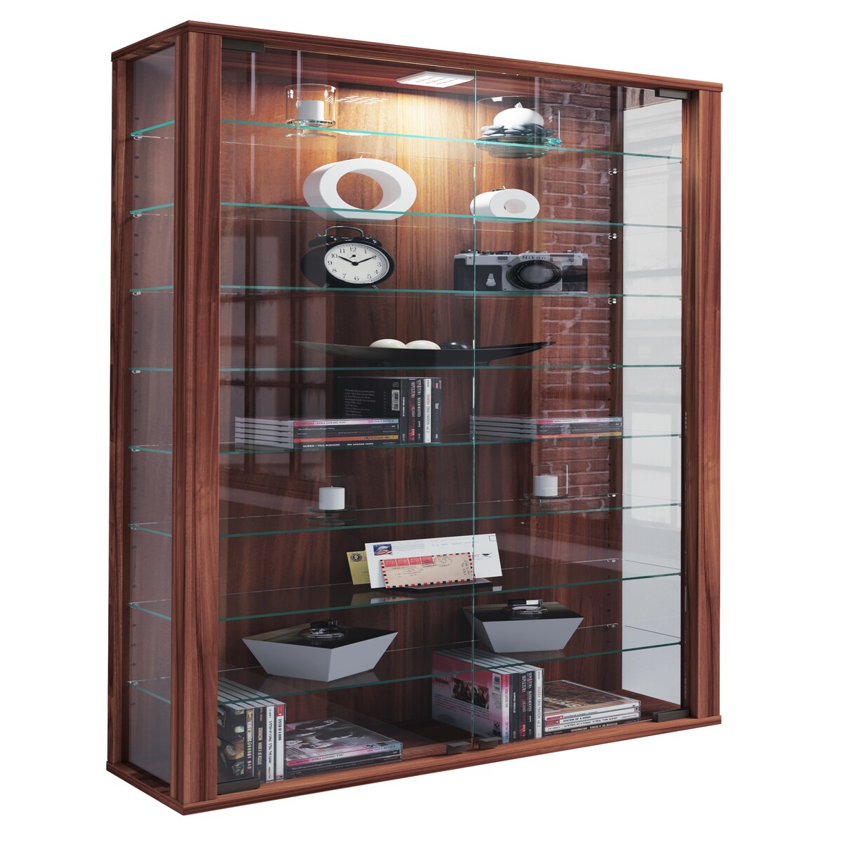 VCM Wandvitrine Vitrosa Kern-Nussbaum H. 91 x B. 59 x T. 18 cm