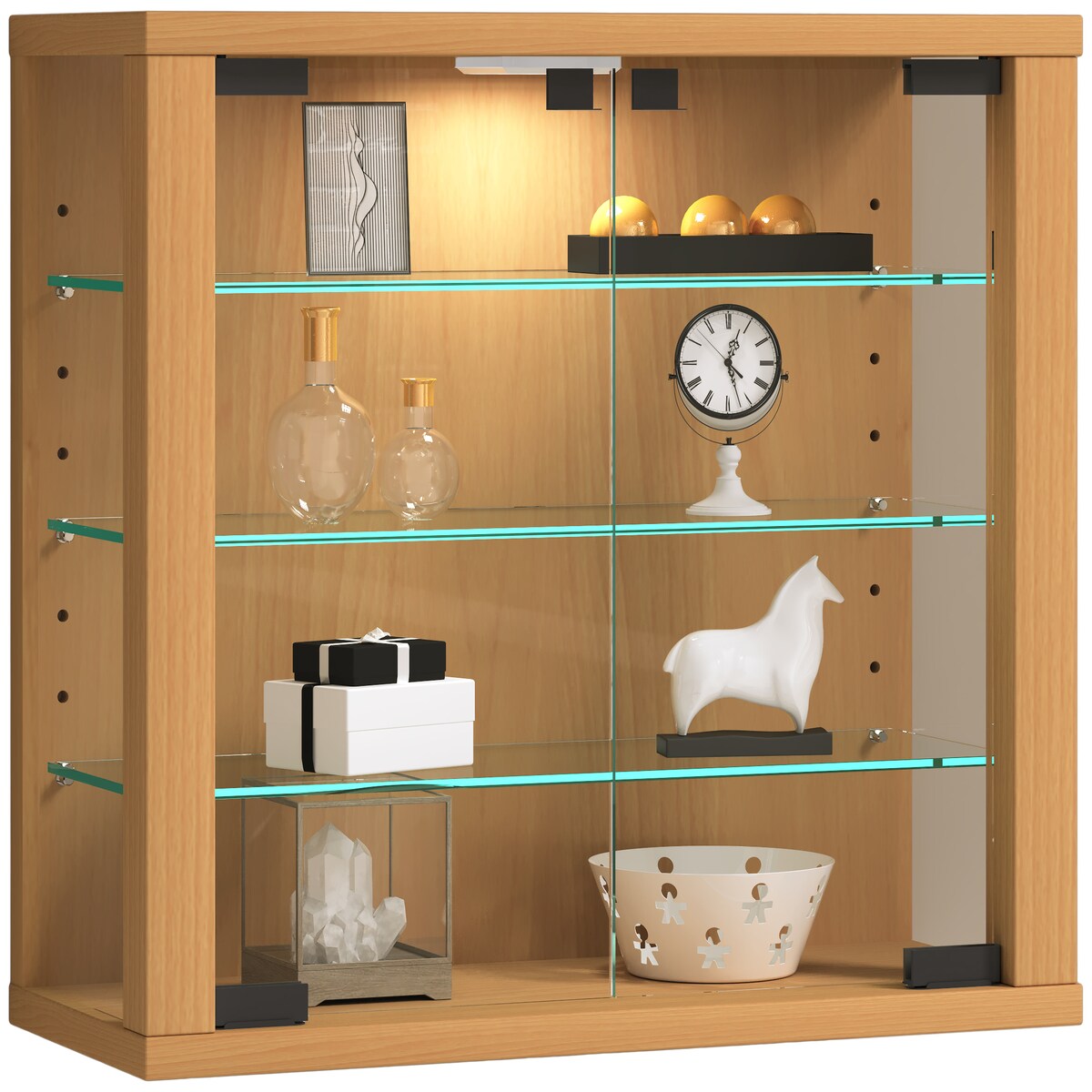 VCM Wandvitrine Vitrosa Honig-Eiche H. 40 x B. 43 x T. 18 cm