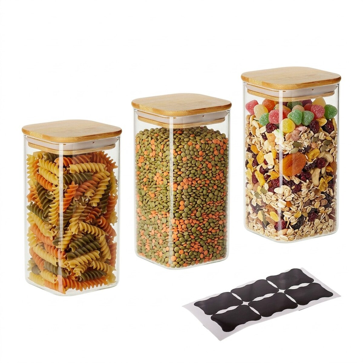 Vorratsgläser eckig 3er-Set 1200ml | luftdicht &stapelbar | Lebensmittelaufbewahrung