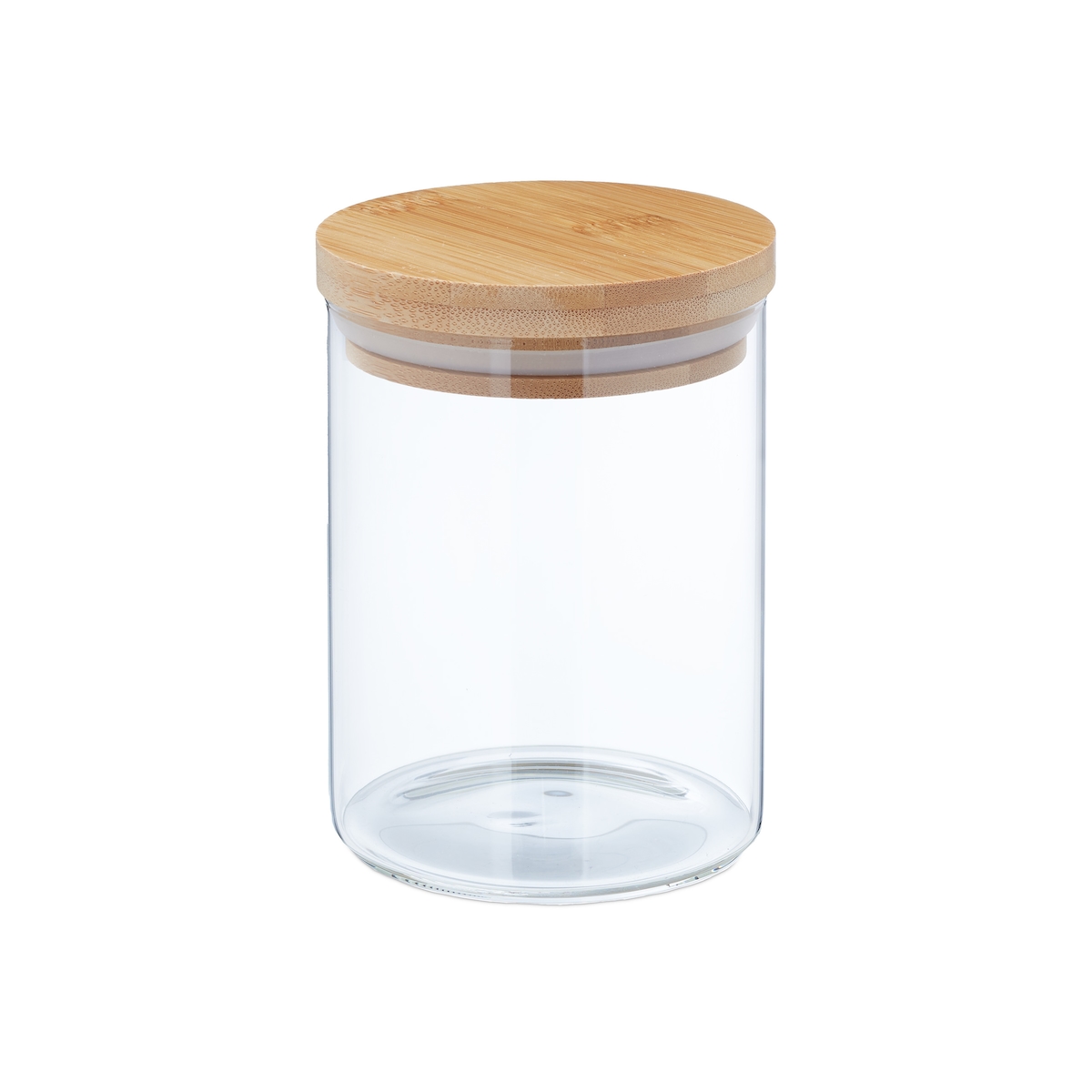Relaxdays Vorratsgläser mit Bambusdeckel, 4er Set, kleine Vorratsdosen aus Glas, 750 ml, luftdicht, transparent/natur