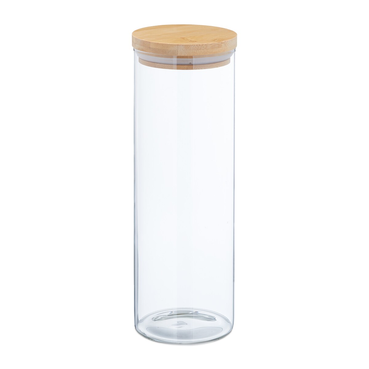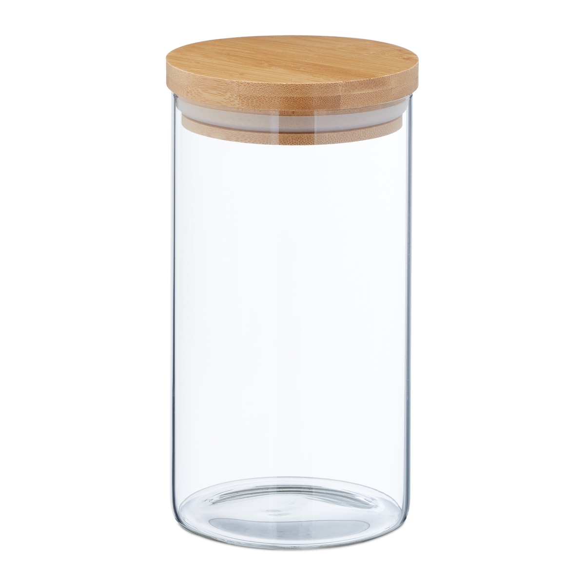 Relaxdays Vorratsgläser mit Bambusdeckel, 3er Set, runde Vorratsdosen aus Glas, 1000 ml, luftdicht, transparent/natur