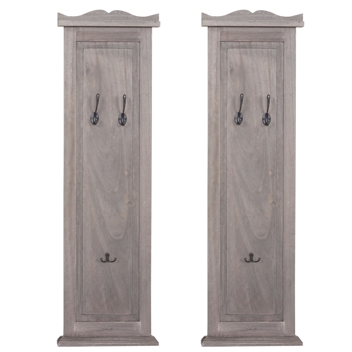 BERLINLODGE 2er-Set Garderobe HxBxT 109x28x5,5cm Wandhaken Holz Grau-Braun shabby Wandgarderobe Garderobenpaneel