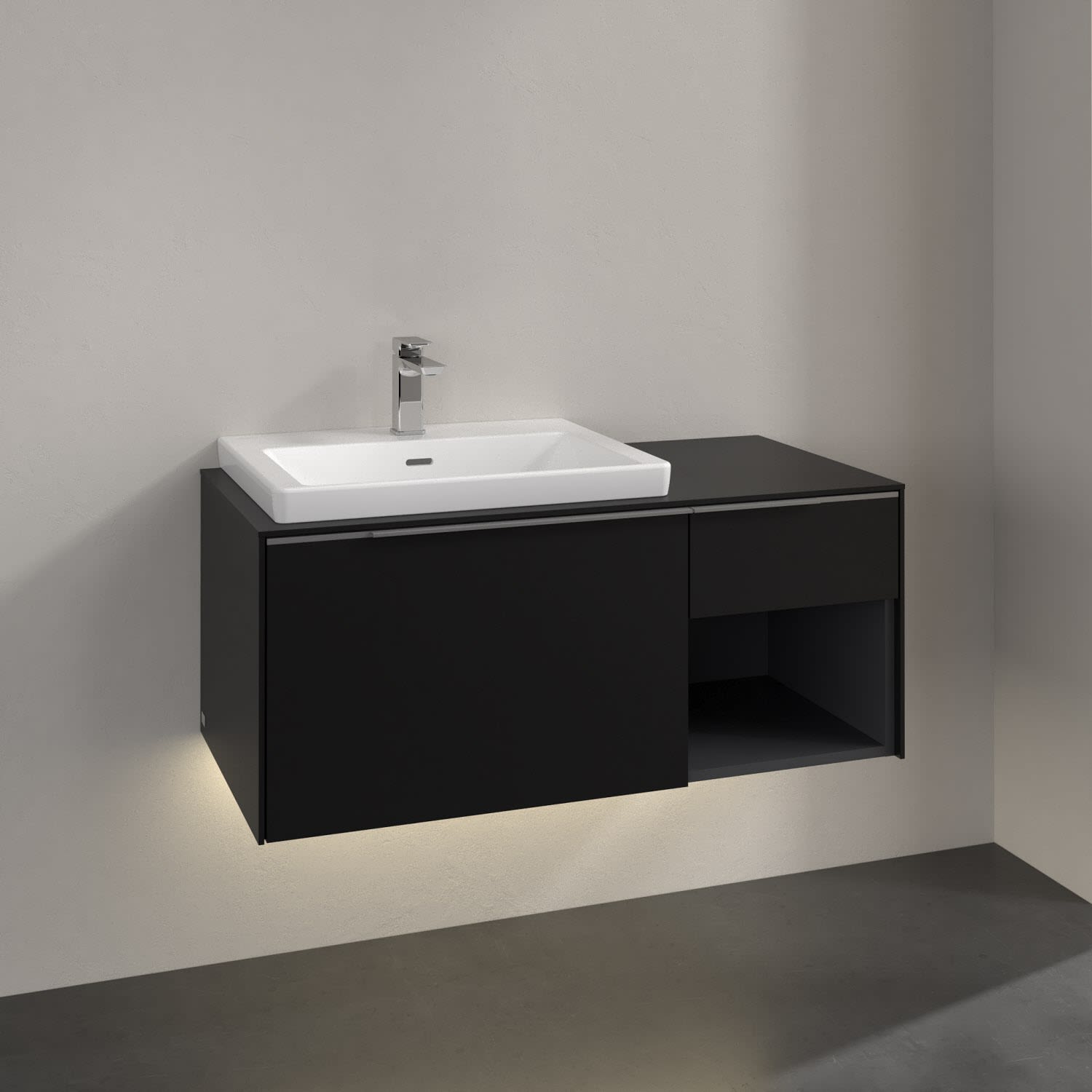 Villeroy & Boch Subway 3.0 Waschtischunterschrank 100,1 cm, 2 Auszüge und Regal rechts, mit LED-Beleuchtung, Badmöbel,