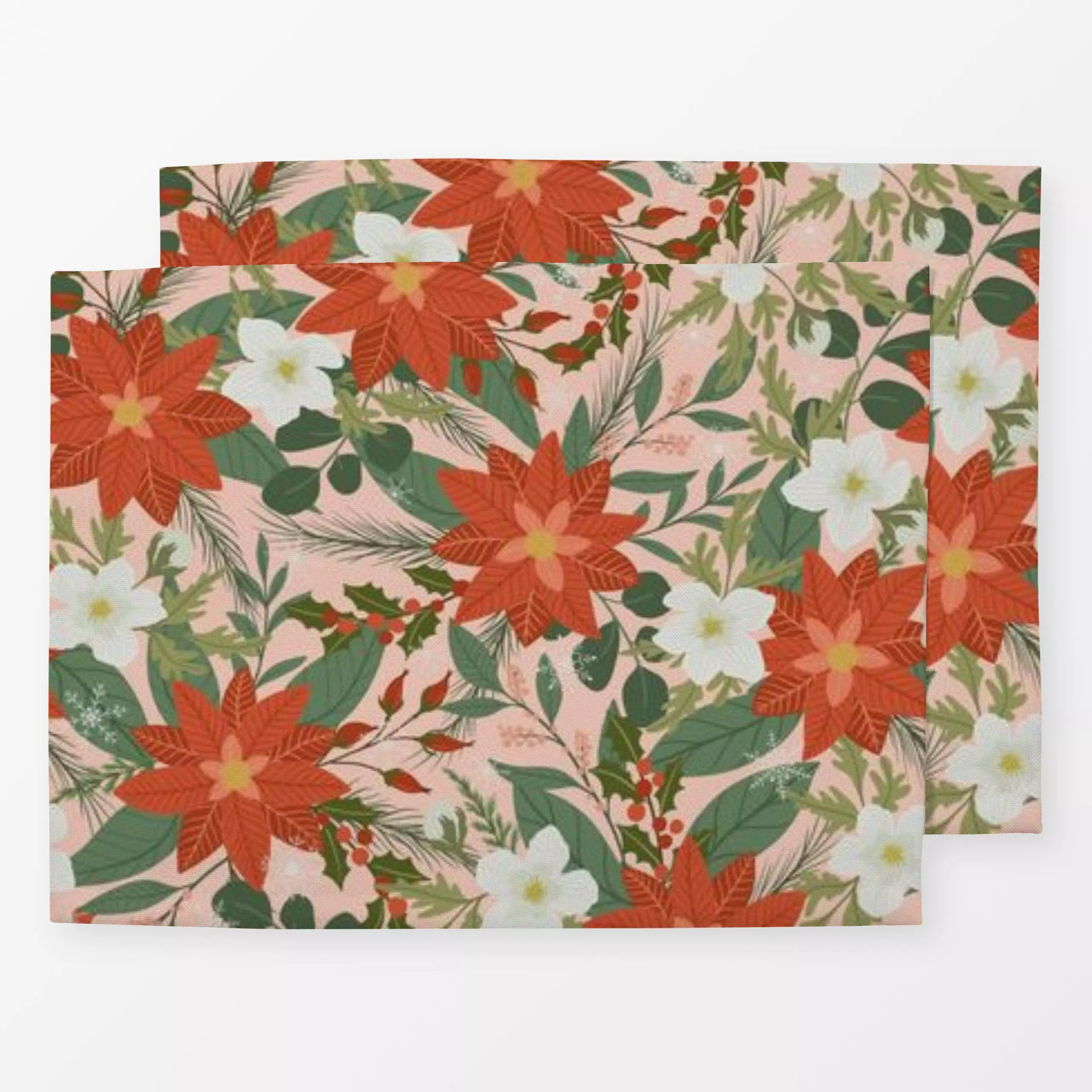 Tischset Weihnachtsblumen - Blumen & Florales, Weihnachten, Pflanzen & Botanik - von „By Anna Sienna"; Blumen, Mohnblumen, S...