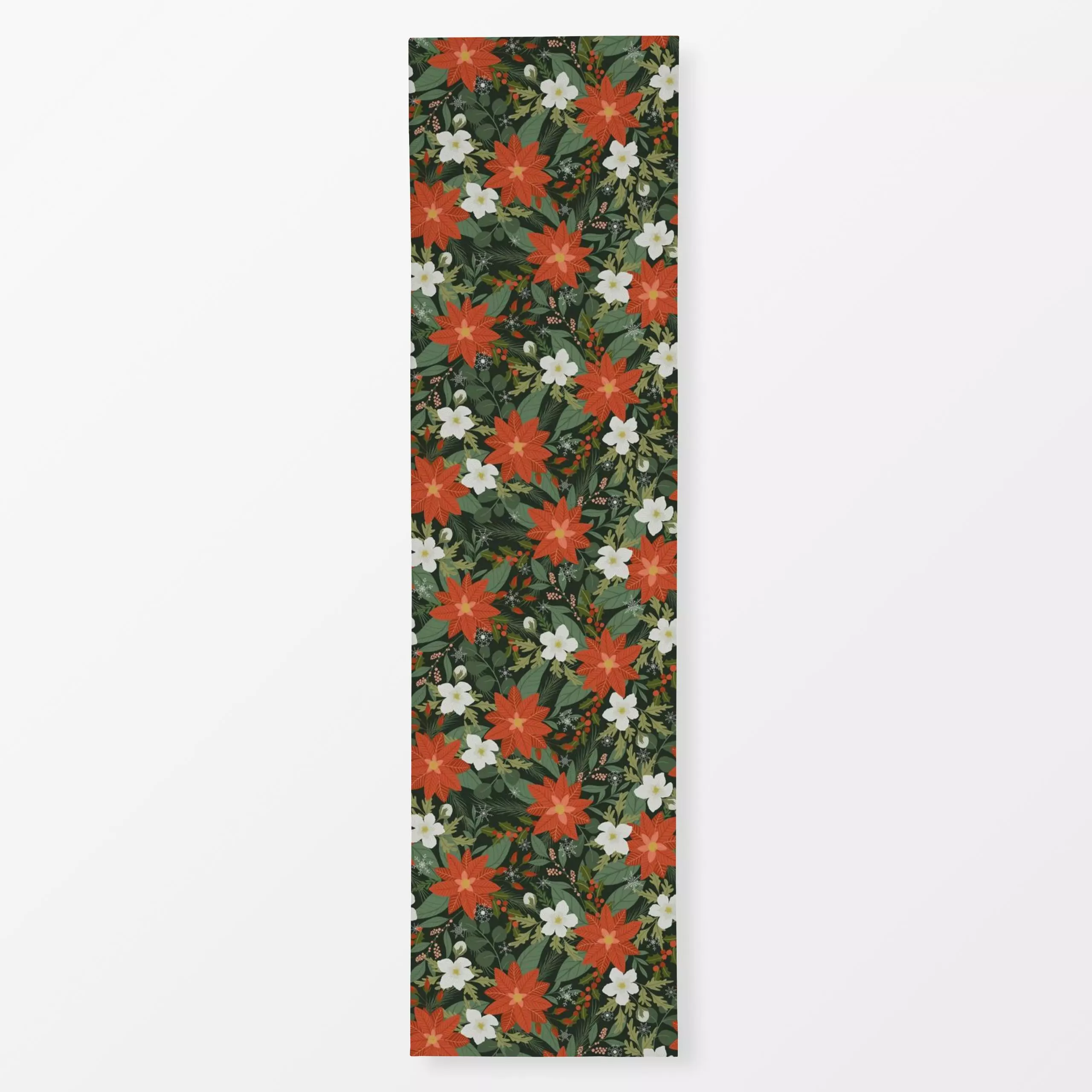 Tischläufer Weihnachtsblumen Schwarz - Blumen & Florales, Weihnachten, Pflanzen & Botanik - von „DEINKI"; Blätter, Schneeflo...