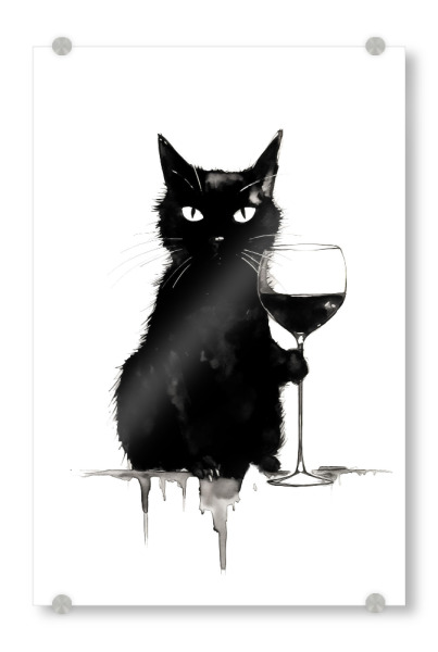 Acrylglasbild "Cat drinking wine" artboxONE - Tiere,Essen & Trinken / Alkohol - Katze,Wein,Schwarzweiß,Minimalistisch,Lustig,Weinglas,Ai